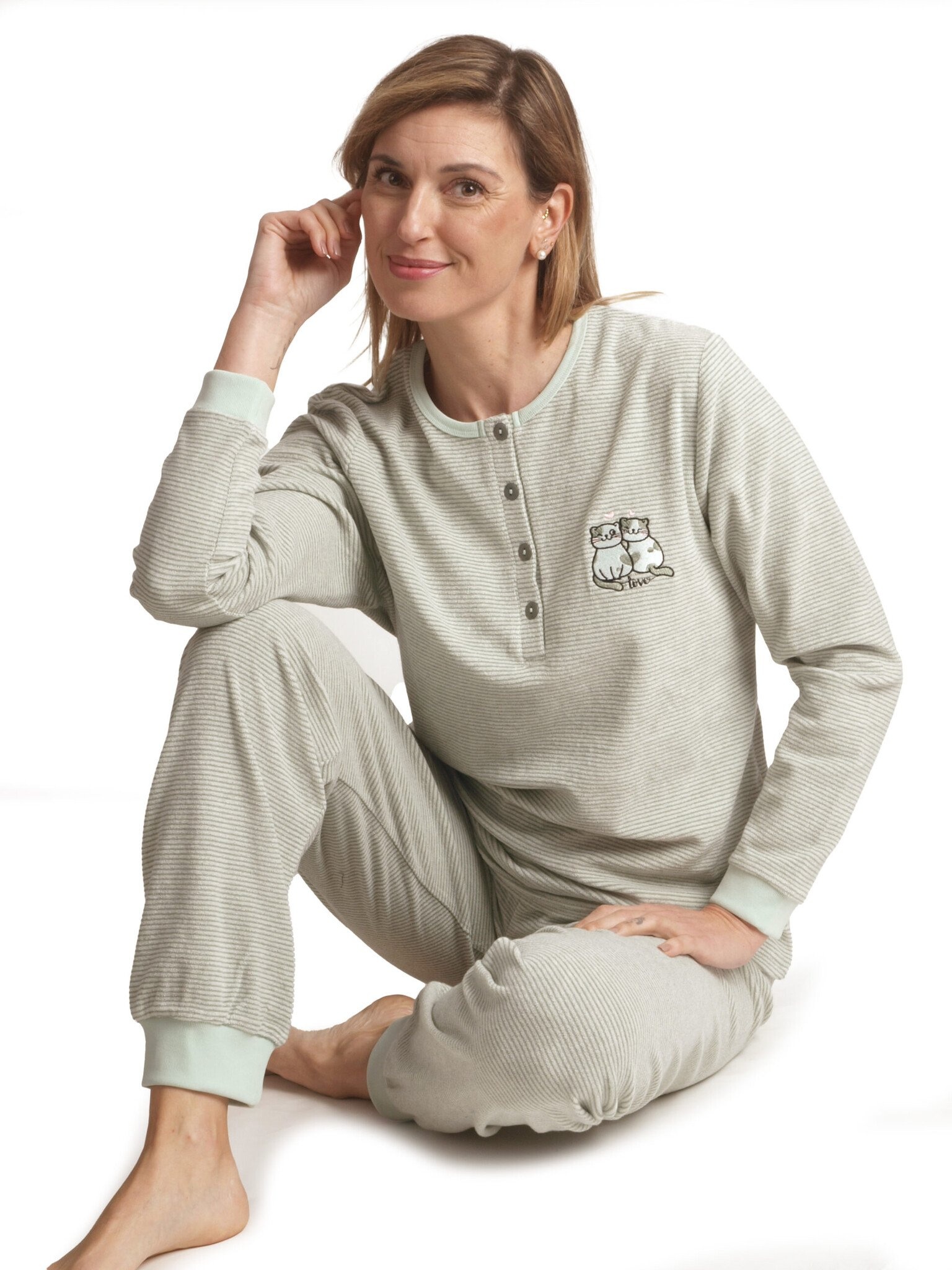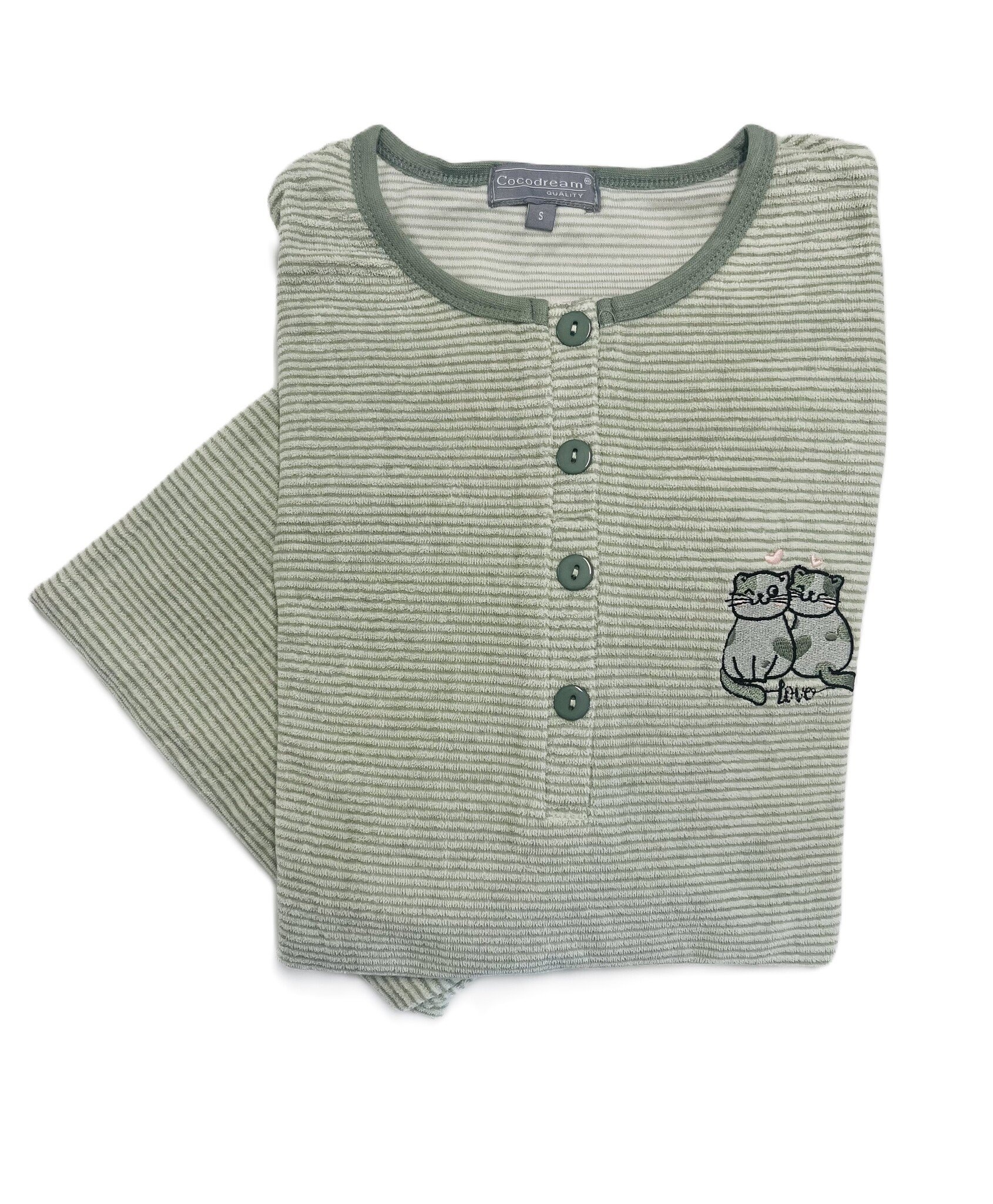 Badstof dames pyjama - groen gestreept