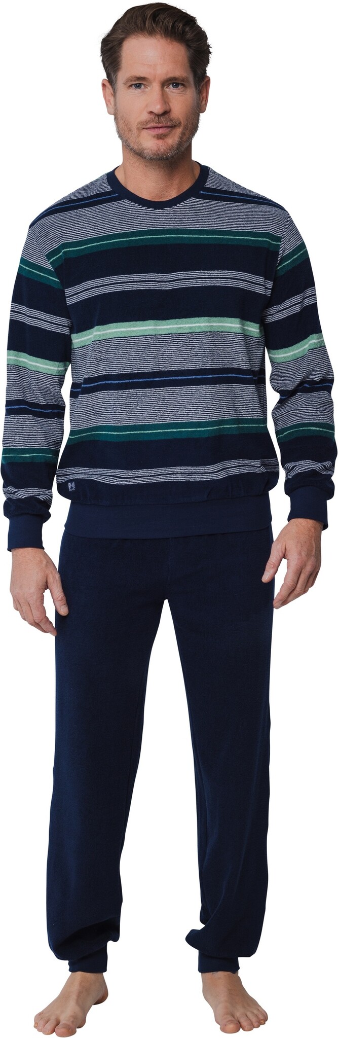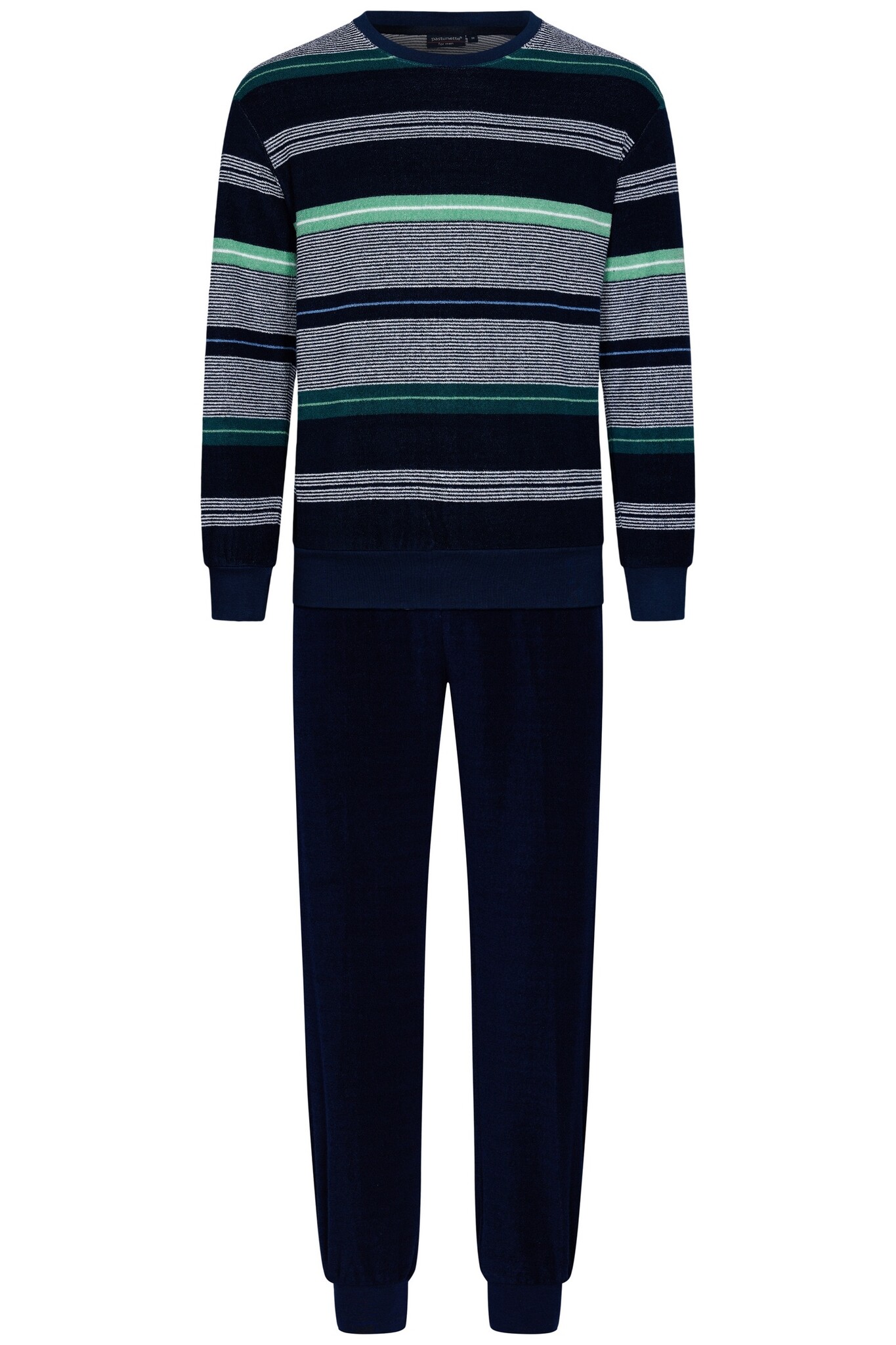 Pastunette Badstof heren pyjama - blauw groen gestreept