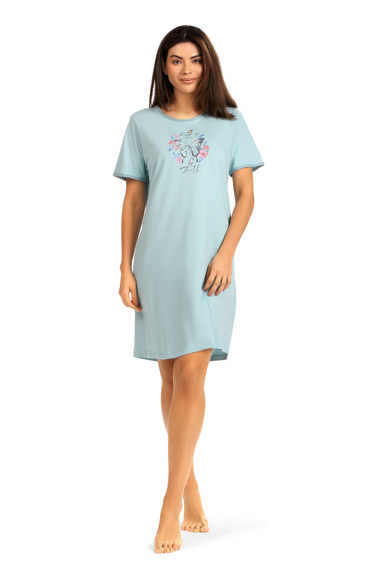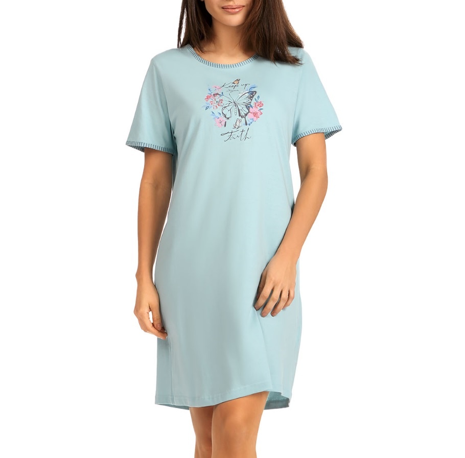 Dames nachthemd van Comtessa in een katoenen kwaliteit. Mooi zomers dessin. Print met subtiele bloemen en vlinder op de borst.