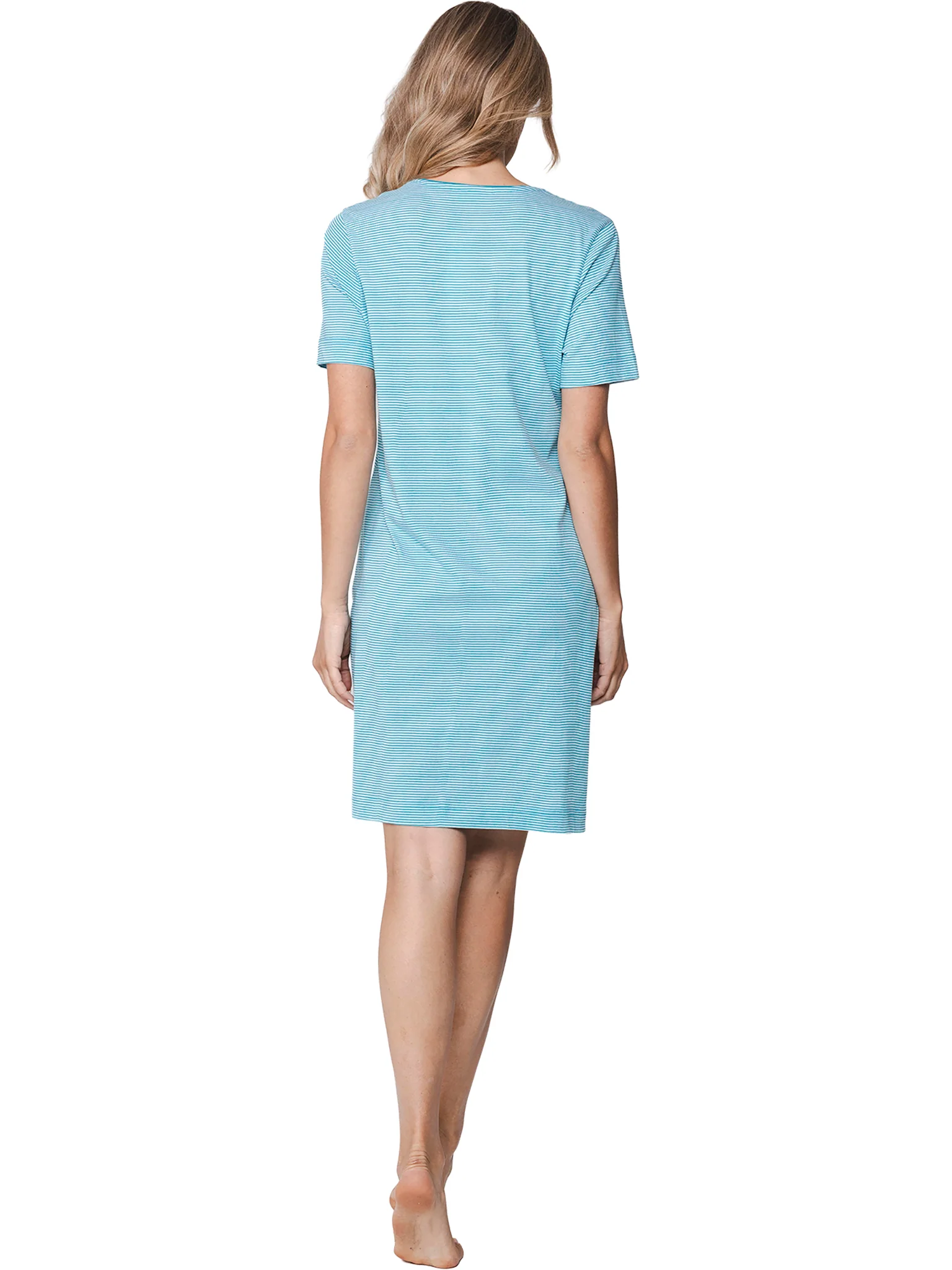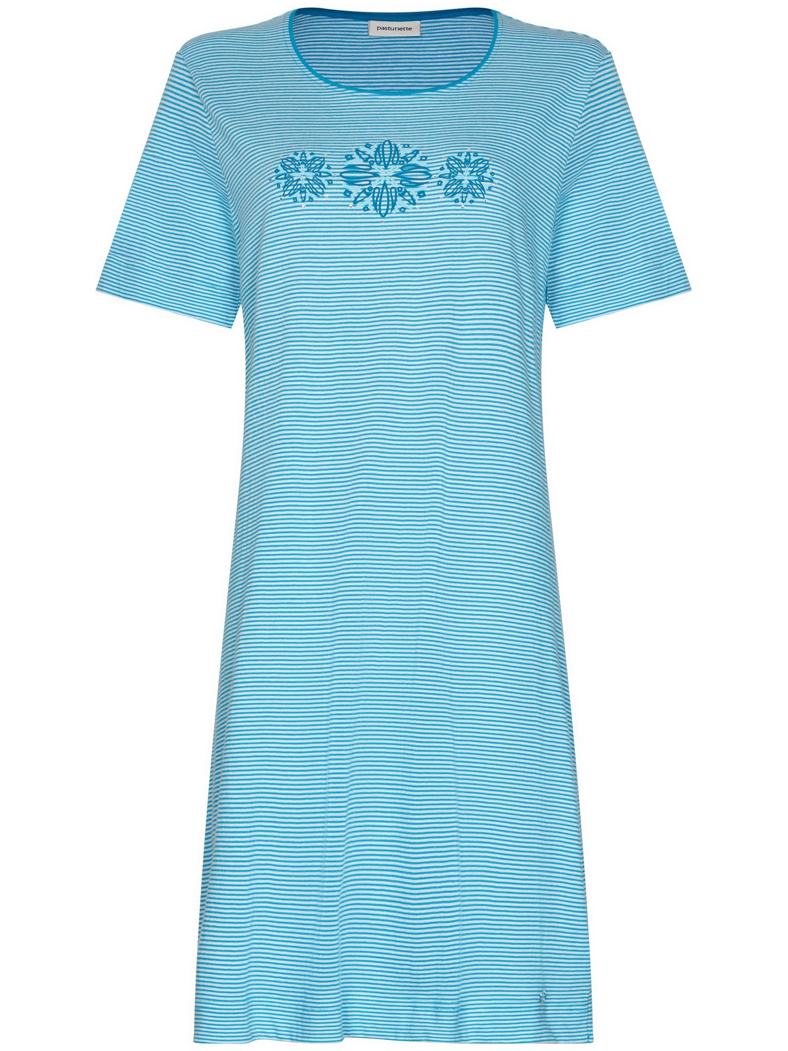 Pastunette dames nachthemd Ipanema – turquoise gestreept – korte mouw – katoen