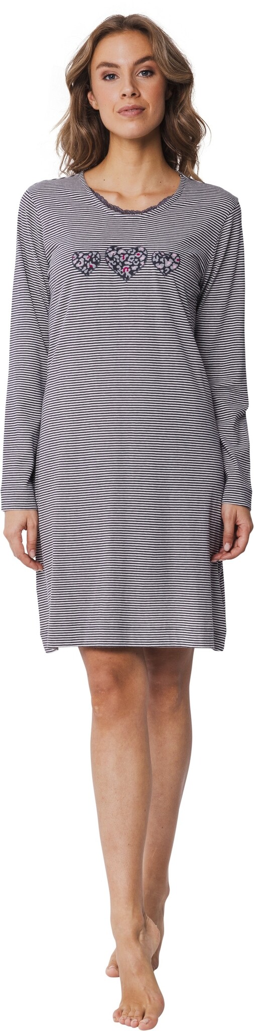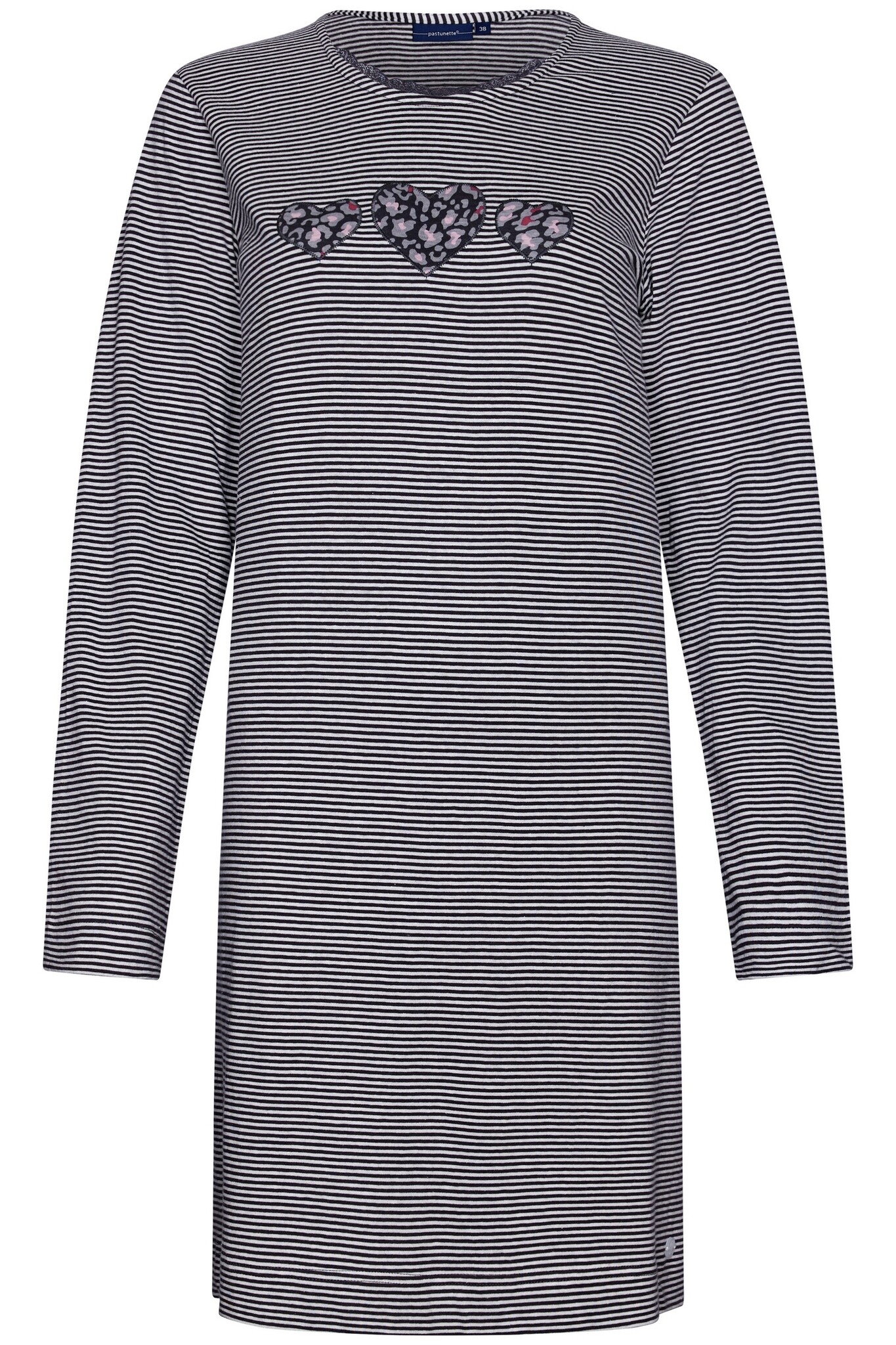 Nachthemd heeft een gestreept dessin met drie hartjes afgebeeld.