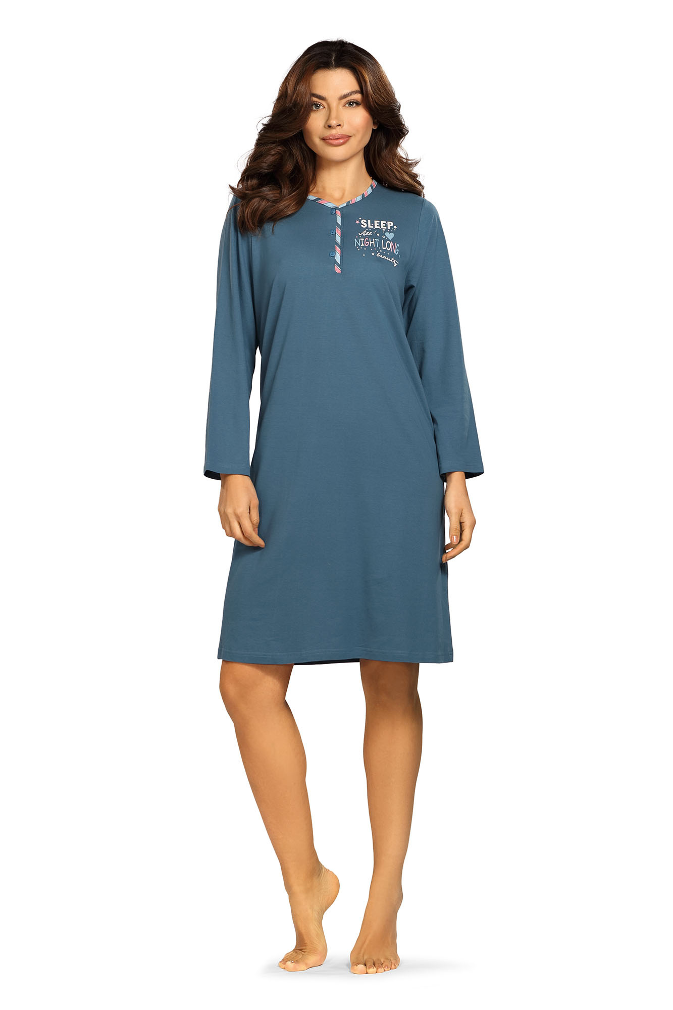 Dames nachthemd van Comtessa in een katoenen kwaliteit. Nachthemd is in een mooie blauwe kleur.
