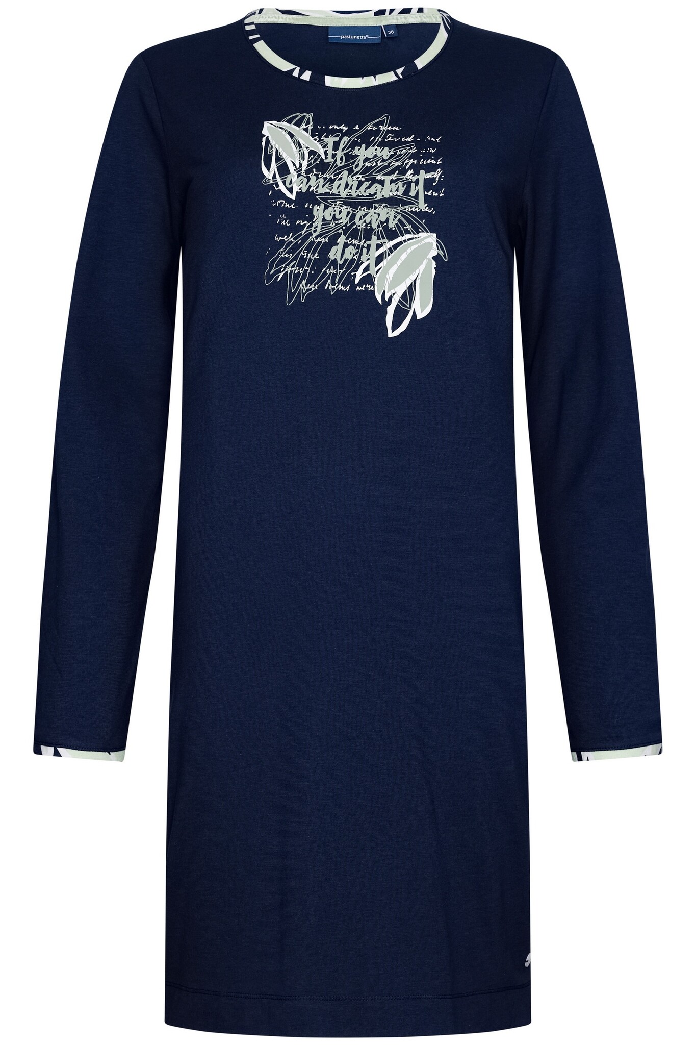 Dames nachtemd van Pastunette. Nachthemd heeft een mooie donkerblauwe kleur met moderne print op de borst.