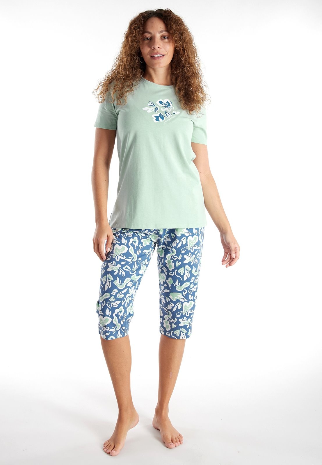 Dames pyjama capri broek - green flowers