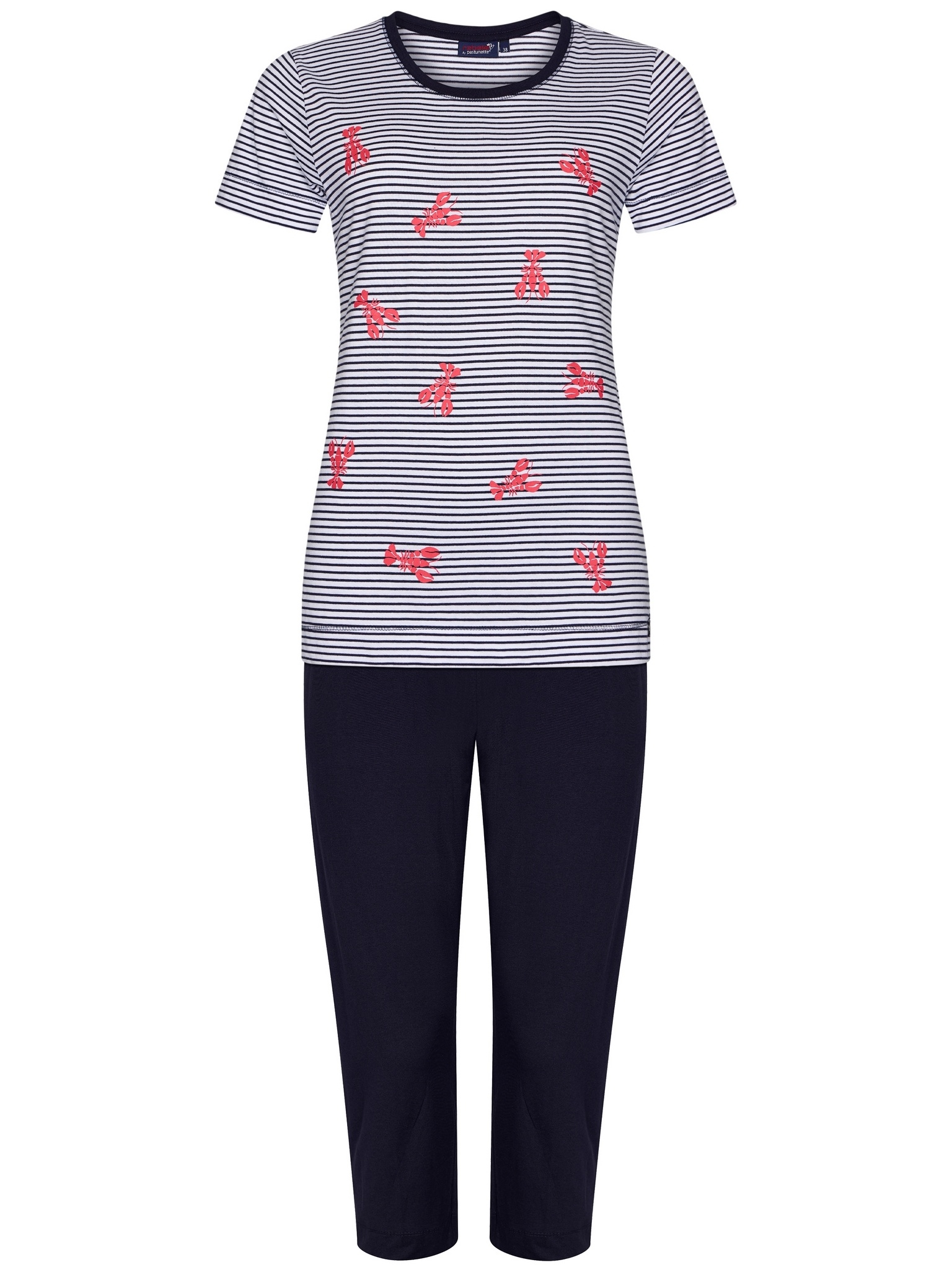 Dames zomer pyjama met capri broek - gestreept kreeftjes