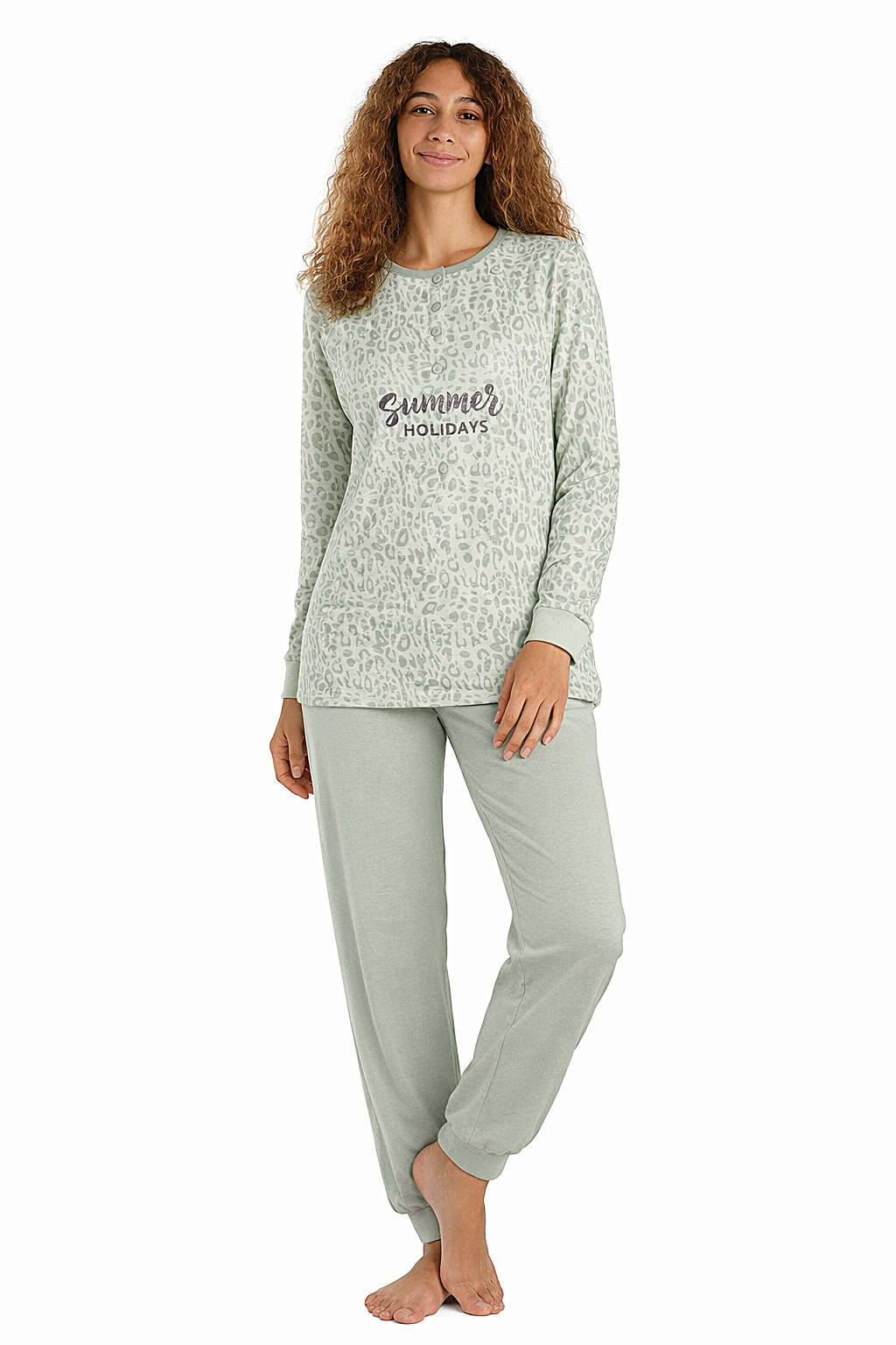 Dames pyjama katoen - groen - summer holiday