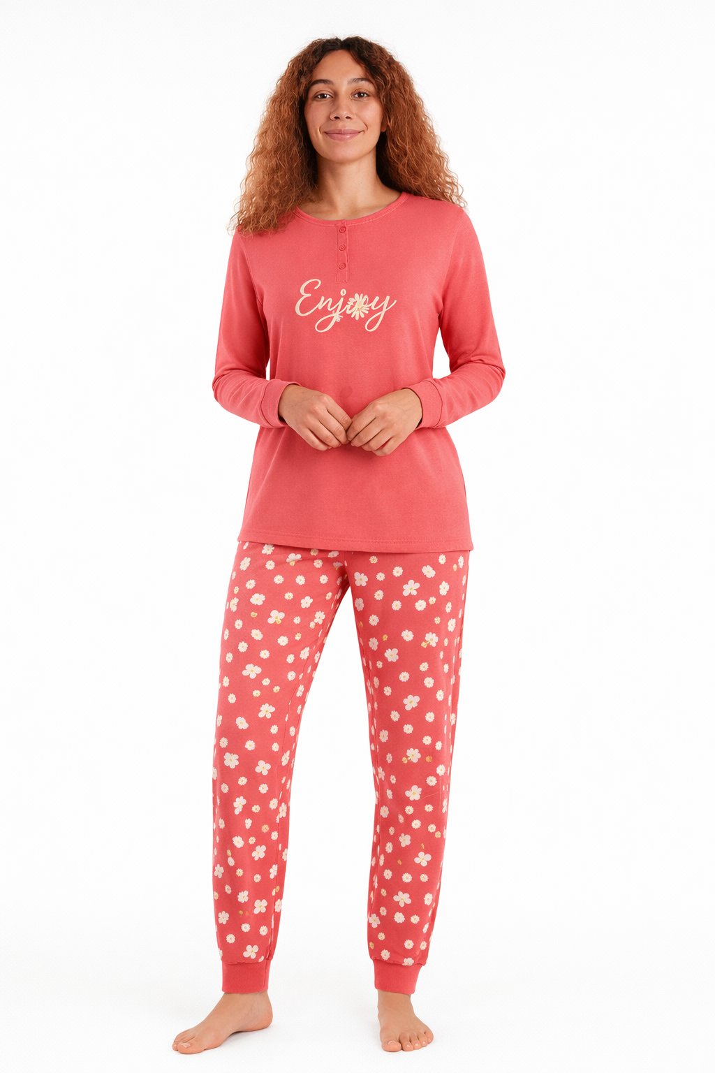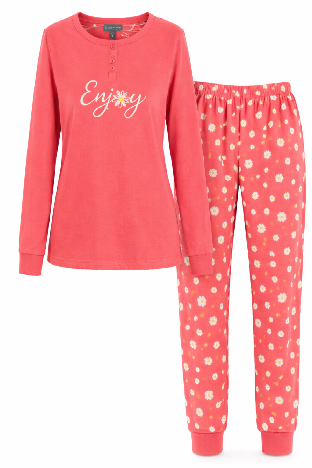 Leuke pyjama van Cocodream. De set is uitgevoerd in een frisse koraalrode kleur en combineert stijl met hoog draagcomfort. Lees meer