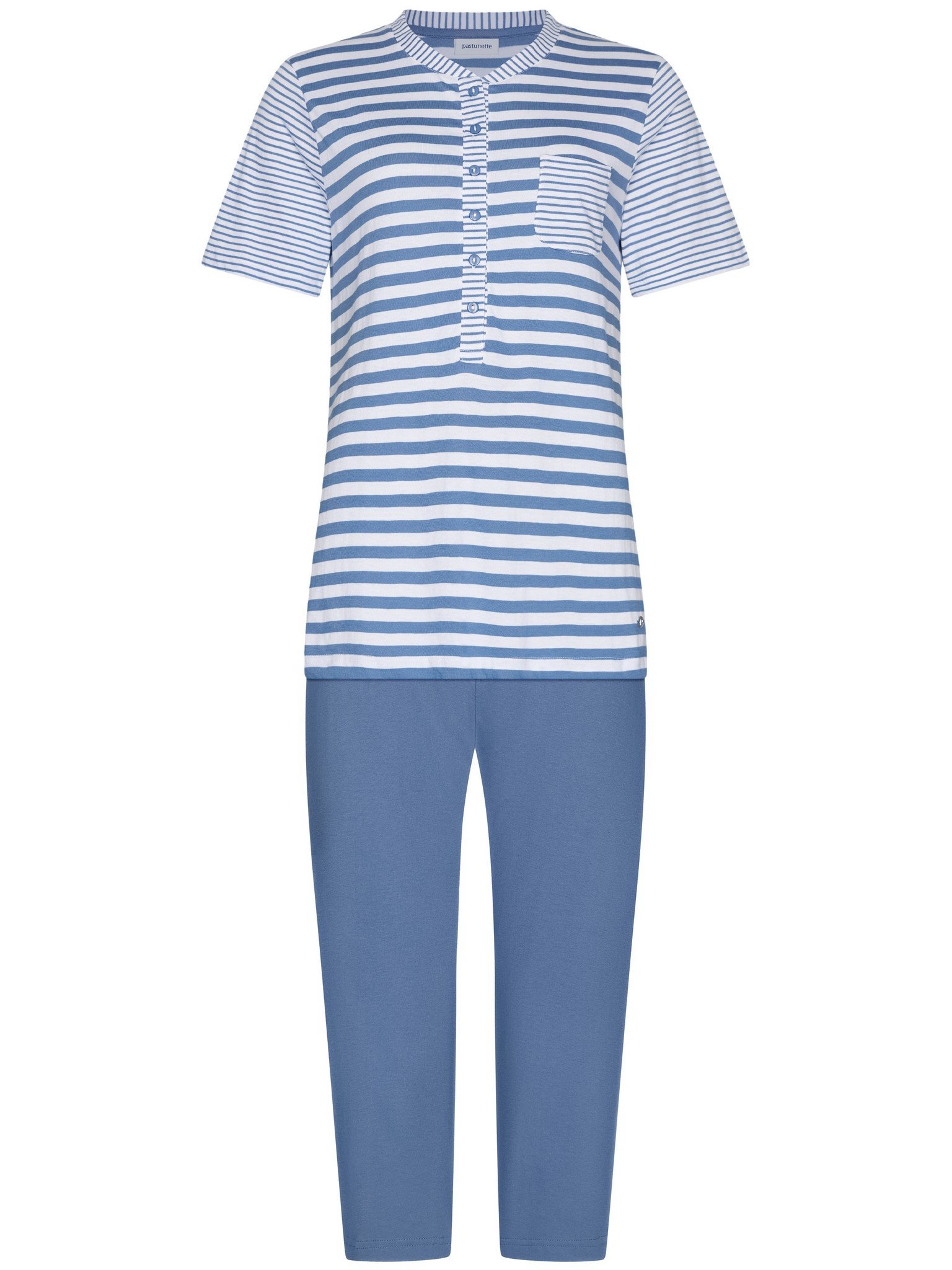 Pastunette dames pyjama korte mouw met 3/4 broek - blue gestreept