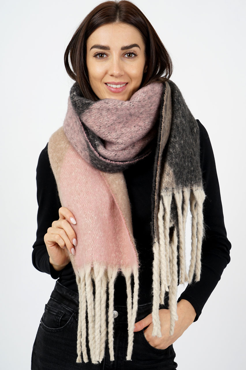 Mooie wintersjaal voor dames. De sjaal heeft meerdere kleuren, waaronder lichtroze.