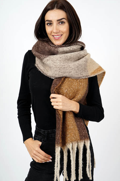 Mooie wintersjaal voor dames. De sjaal heeft meerdere kleuren bruin.