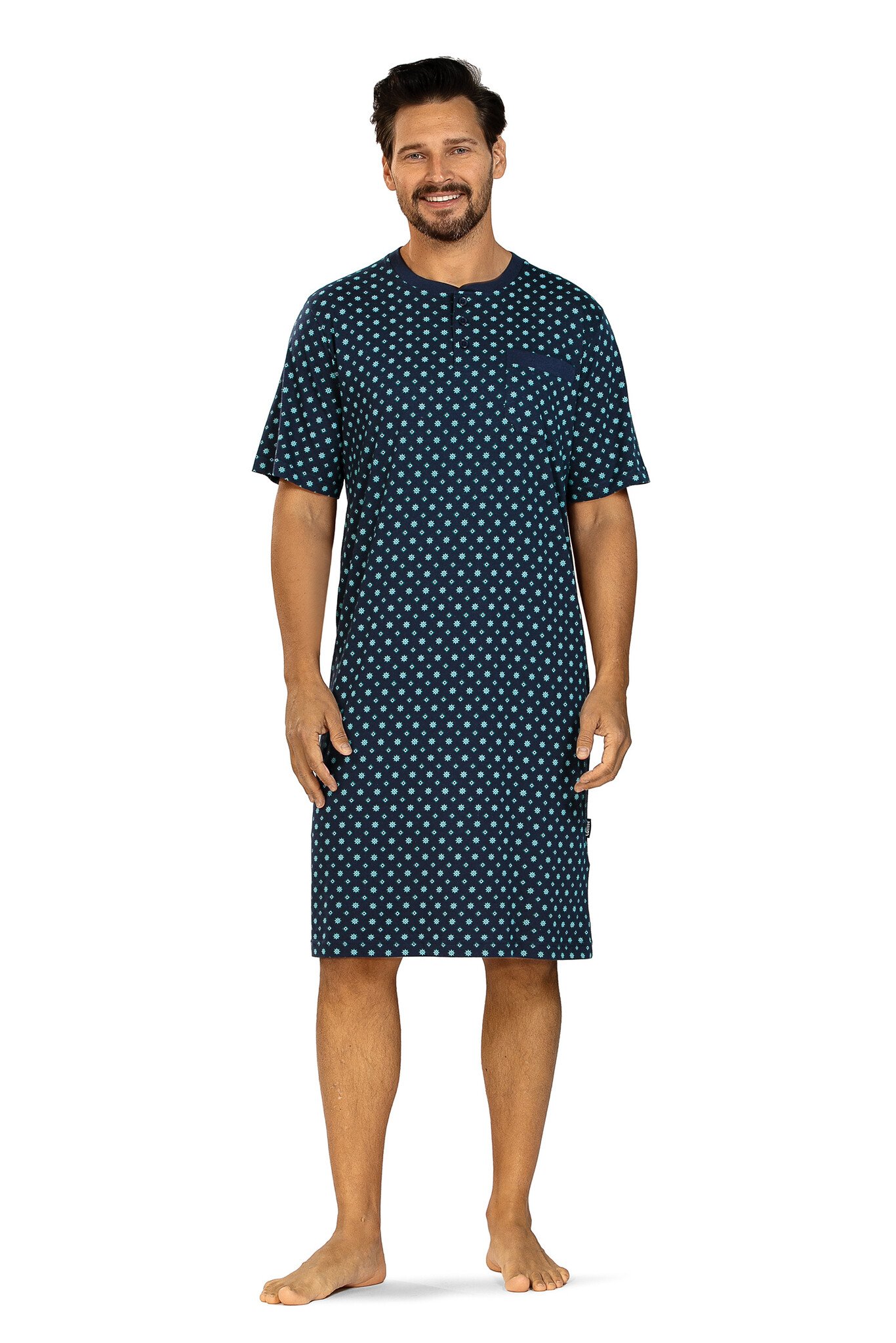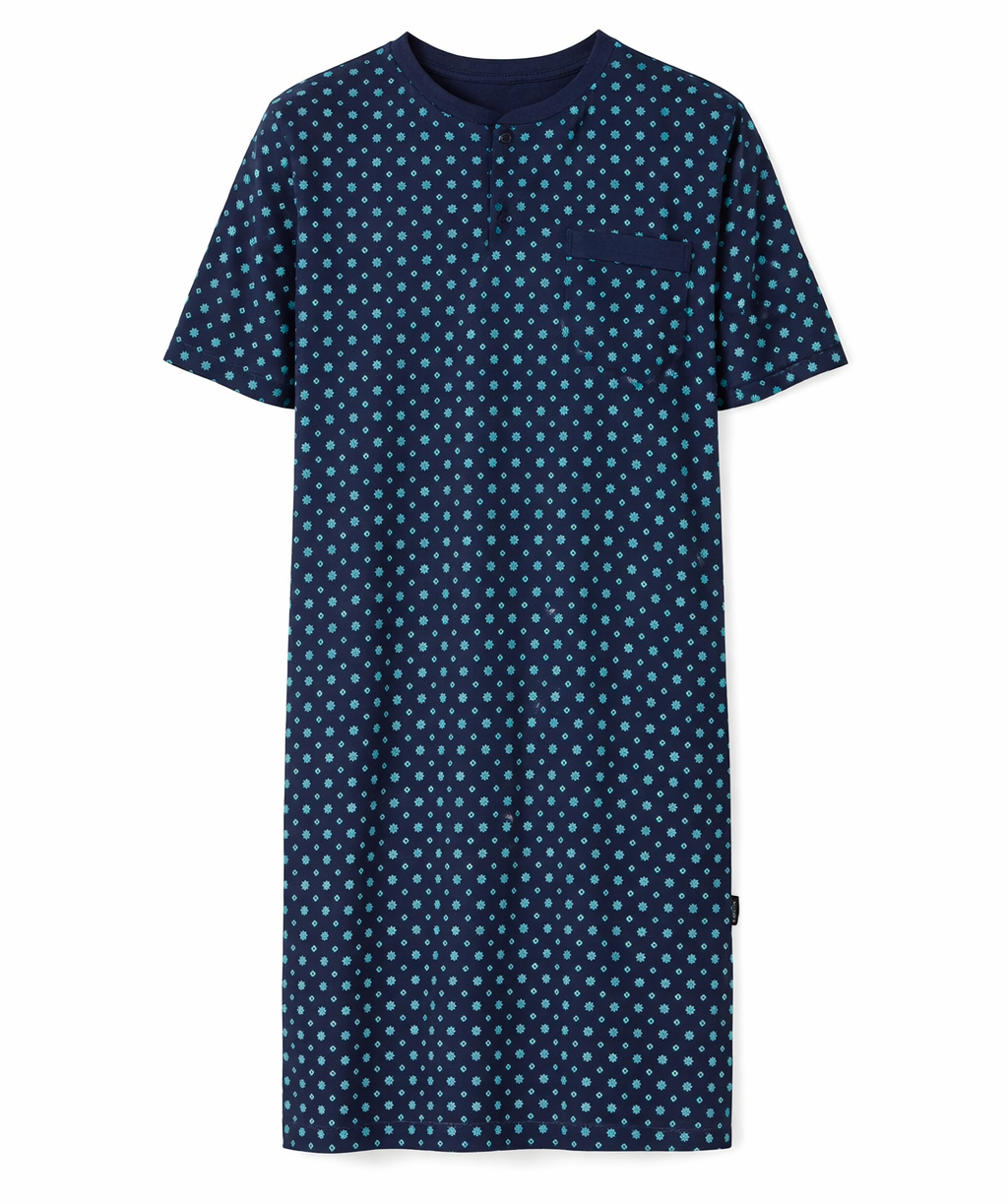 Heren nachthemd korte mouw - donkerblauw print