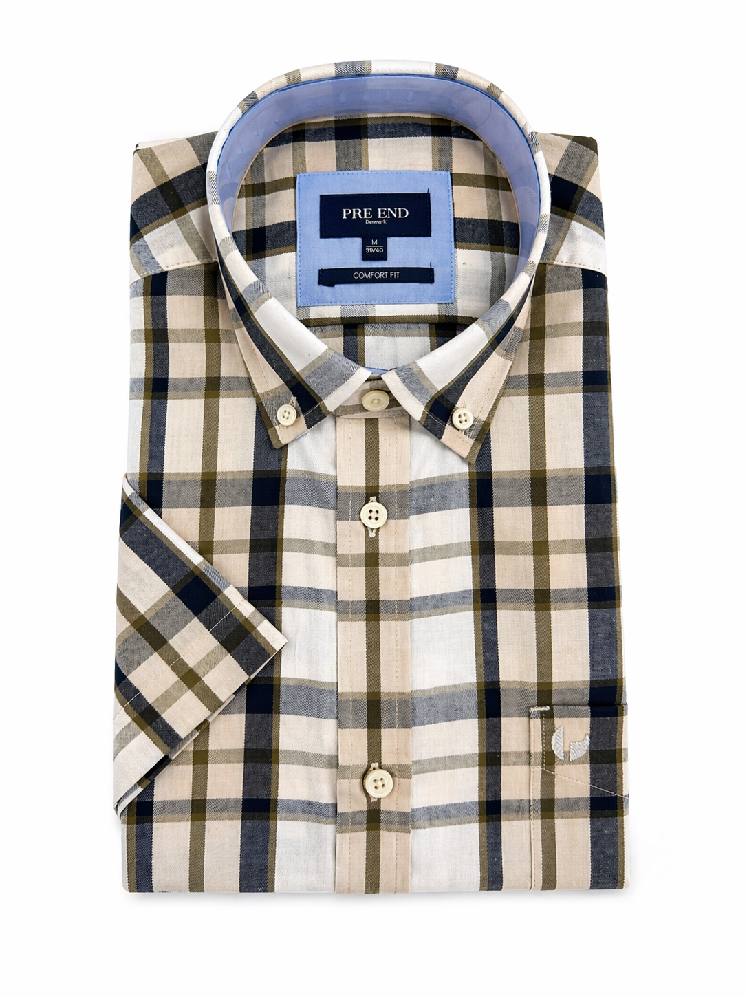 Pre End heren overhemd korte mouw kopen? Dit beige geruite overhemd is strijkvrij, comfortabel en gemaakt van katoen polyester mix. Ideaal als zomers overhemd heren, casual overhemd korte mouw, button down overhemd of groot maten overhemd heren (M t/m 5XL). Perfect voor dagelijks gebruik en een verzorgde uitstraling.