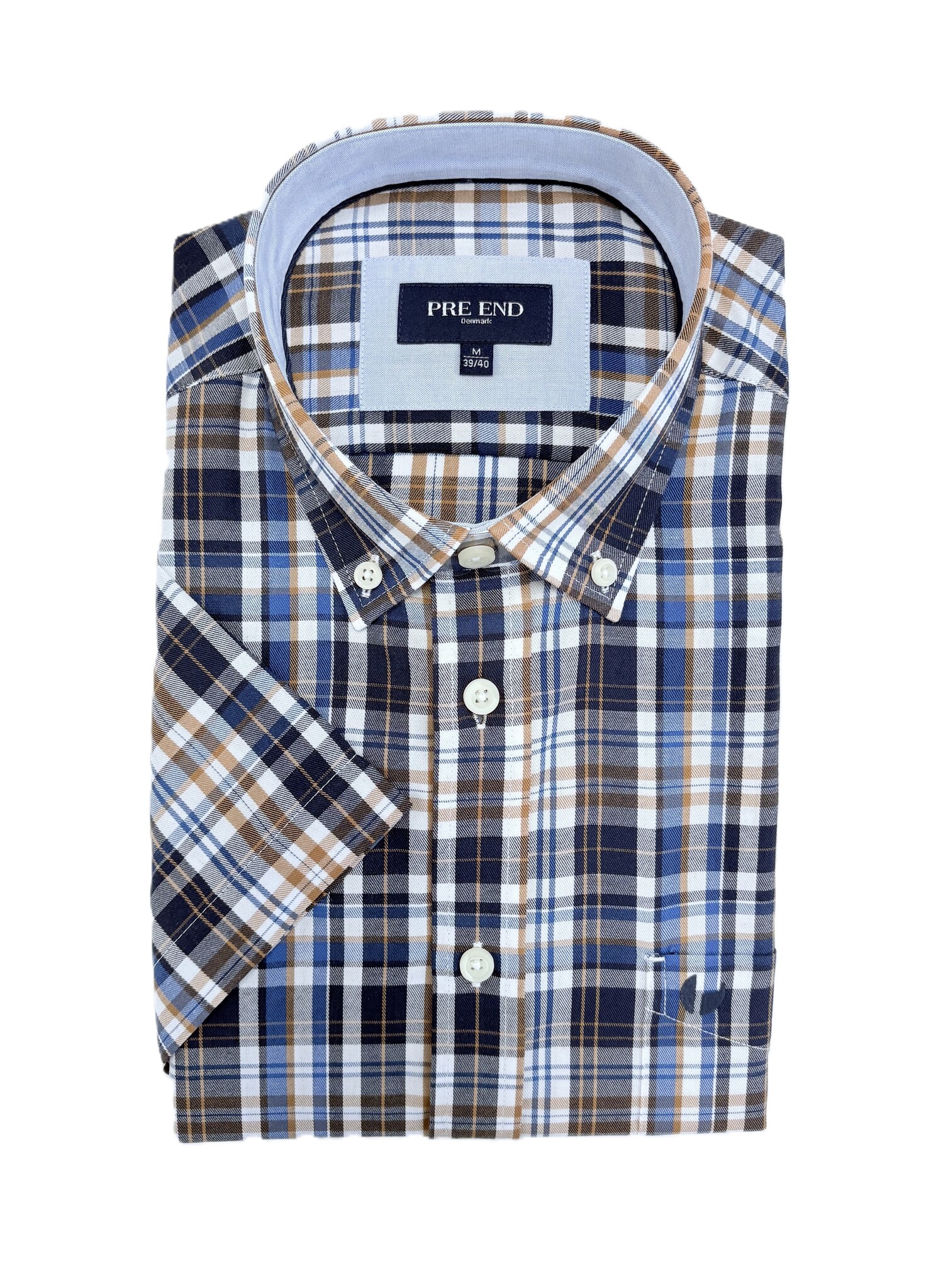 Heren overhemd met korte mouw van het merk Pre End. Gemaakt van 65% polyester en 35% katoen. Verkrijgbaar in verschillende maten.