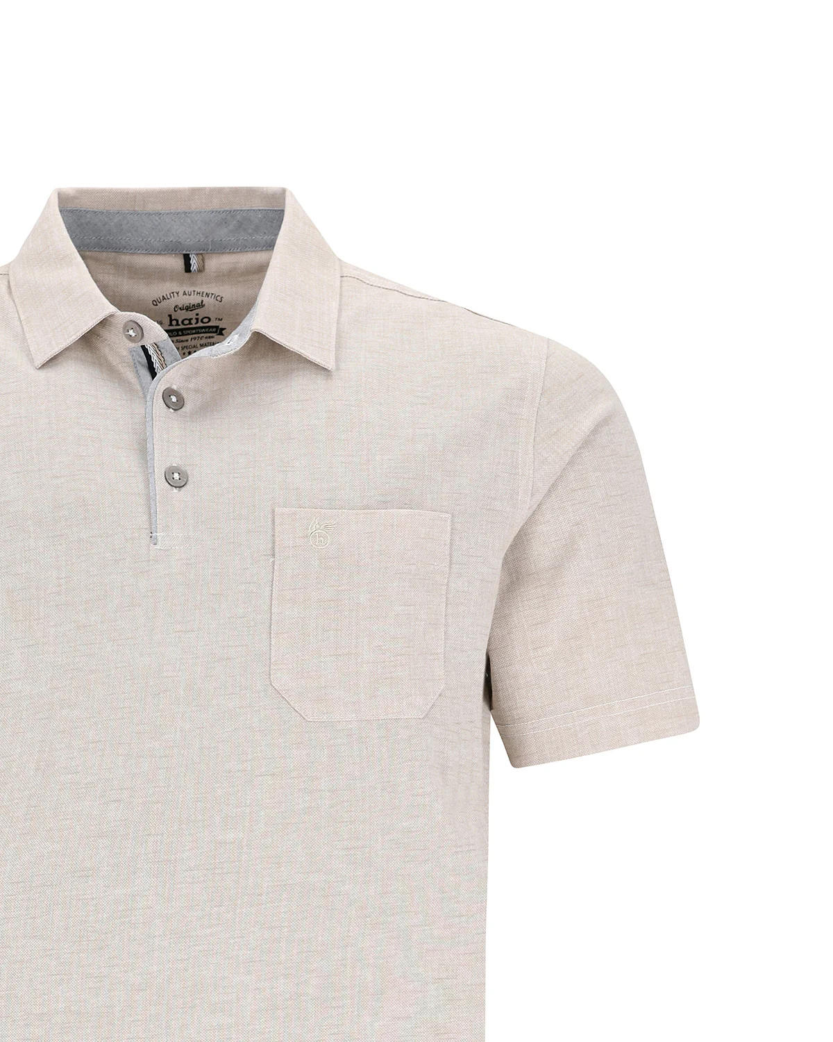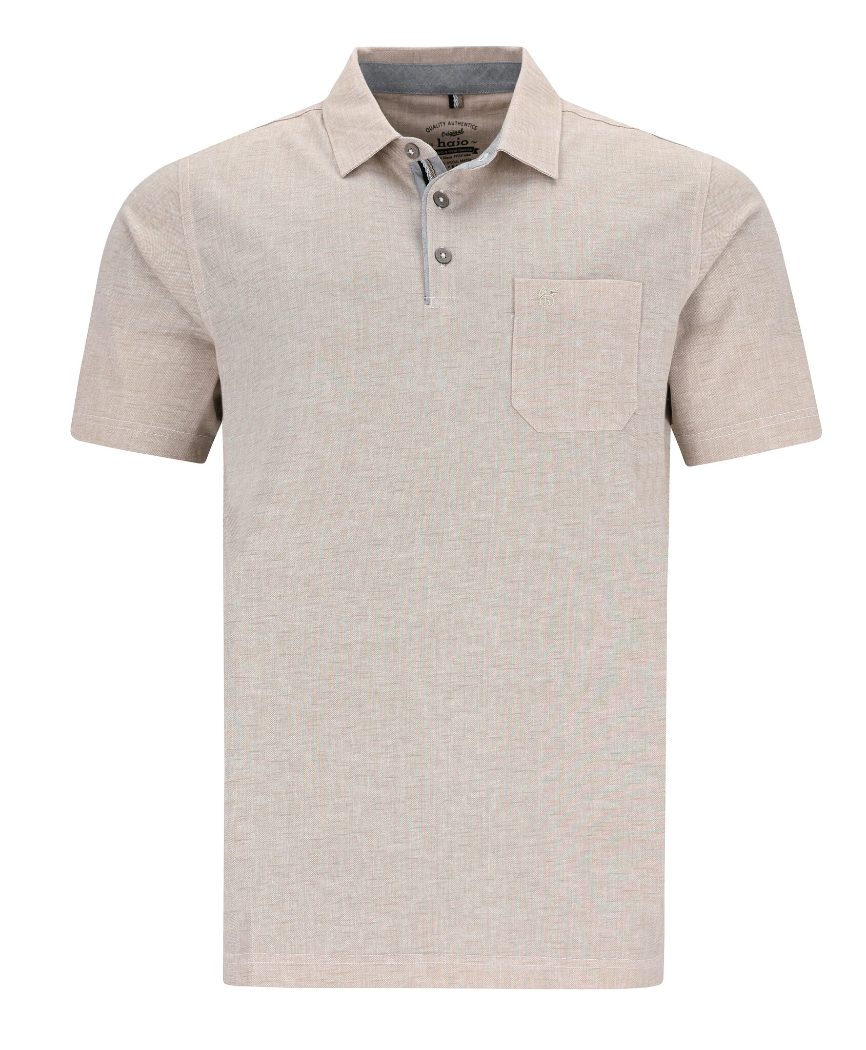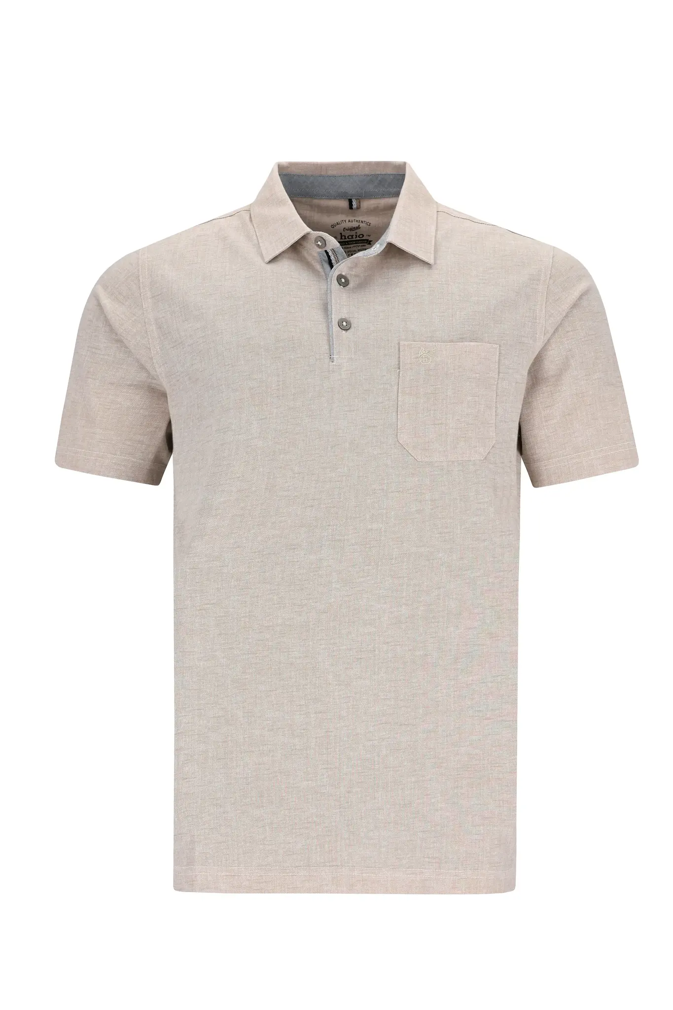 Stijlvolle Hajo heren polo in beige met regular fit. Gemaakt van een ademende katoenmix, strijkvrij en stay fresh kwaliteit. Comfortabel en tijdloos.
