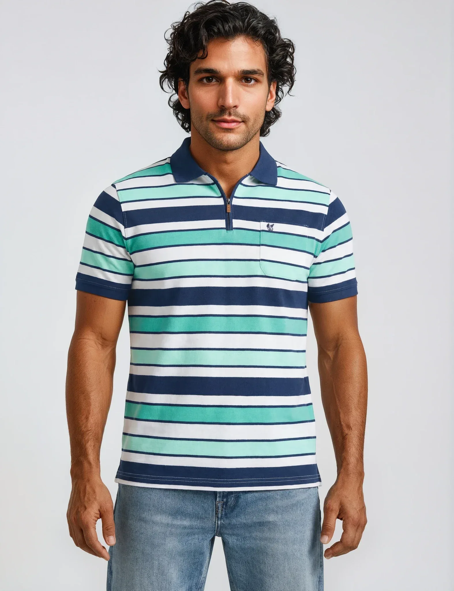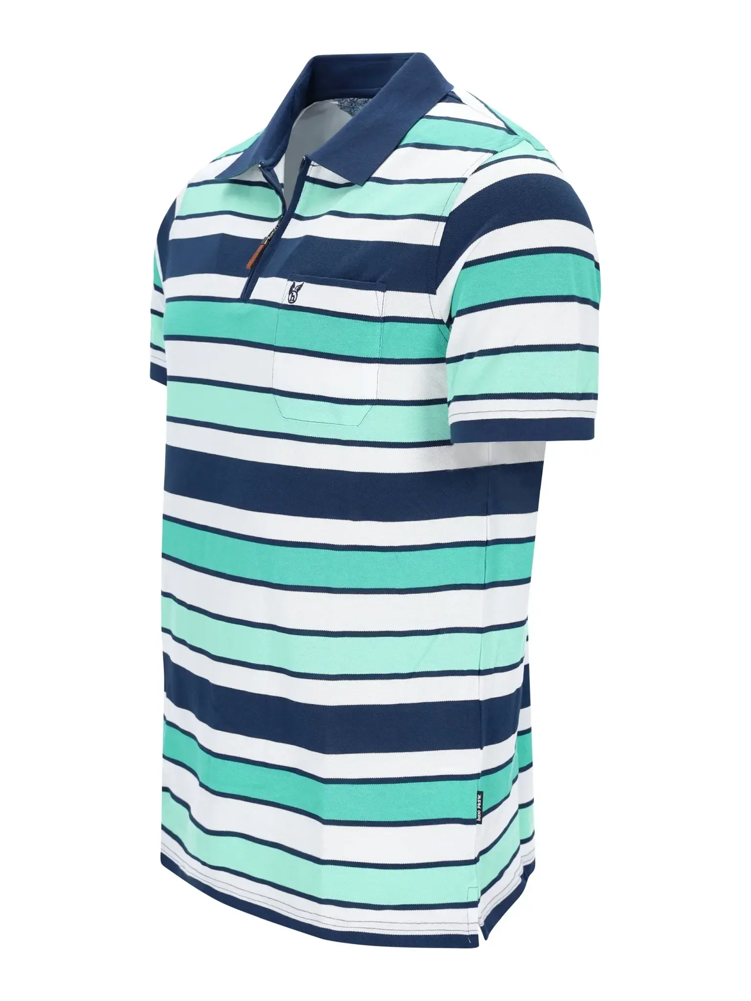 Heren Poloshirt – Stay Fresh – Blauw/Groen Gestreept – Met Rits