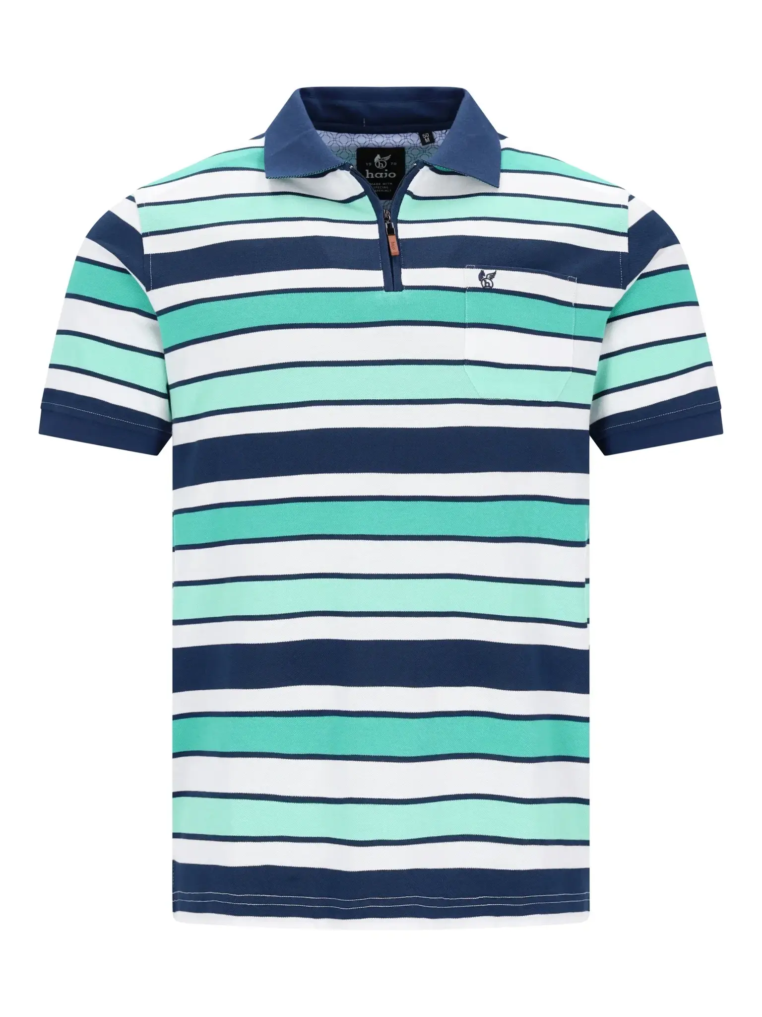 Hajo Heren Poloshirt – Stay Fresh – Blauw/Mint Gestreept – Met Rits