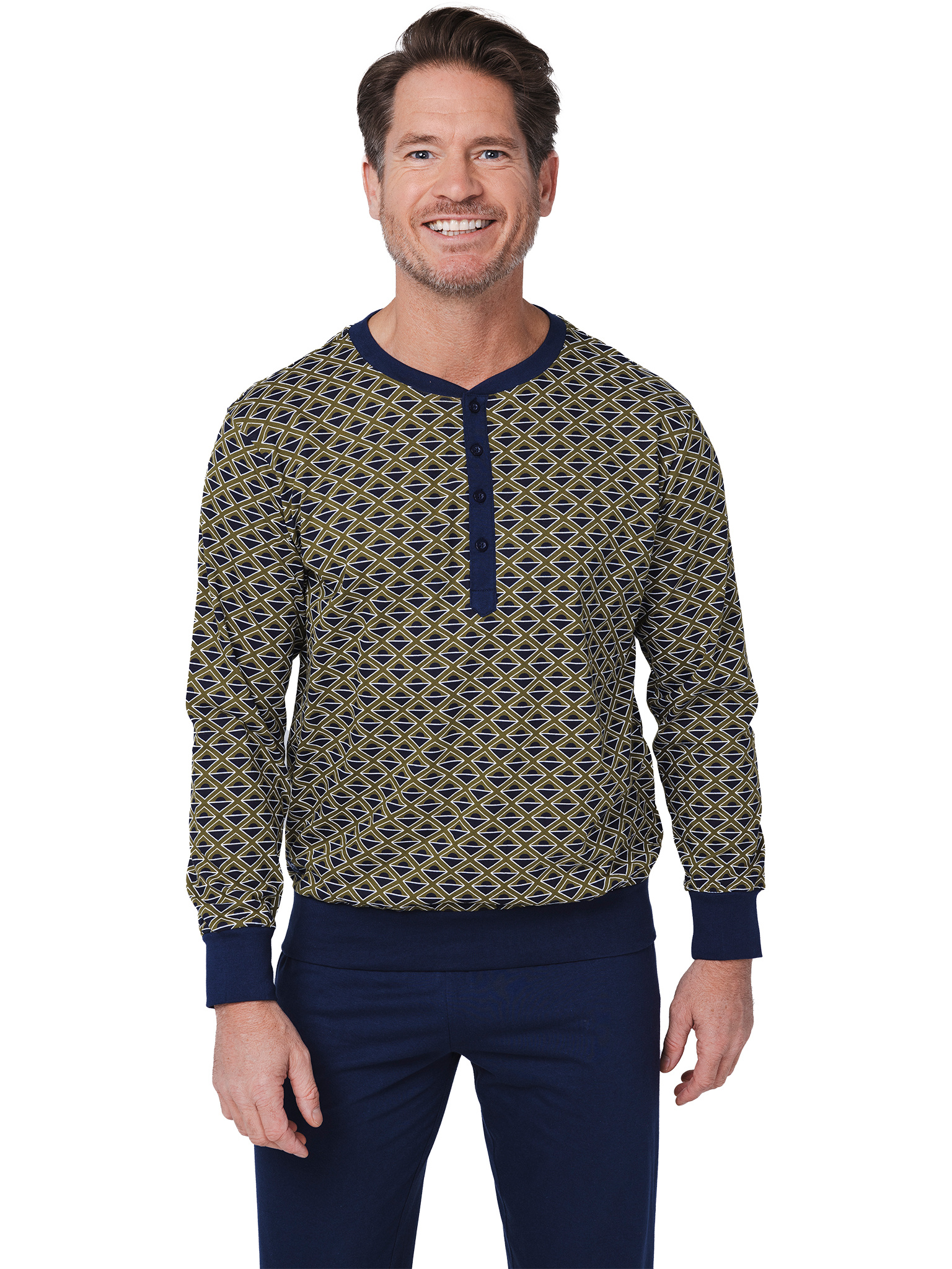 Pastunette Heren pyjama katoen - allover print groen blauw