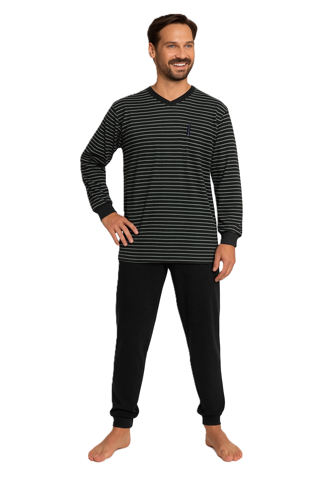 Heren pyjama - donkergrijs - gestreept dessin