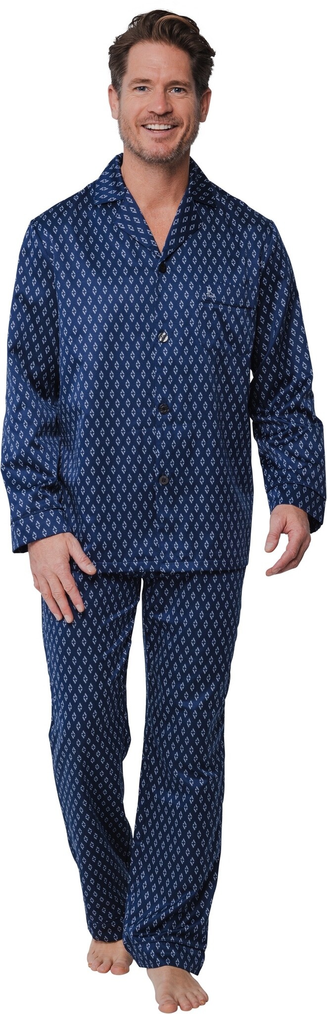 Satijnen heren pyjama van het merk Robson. Doorknoop jasje met lange mouwen en 2 zijzakken plus borstzakje. Lees meer