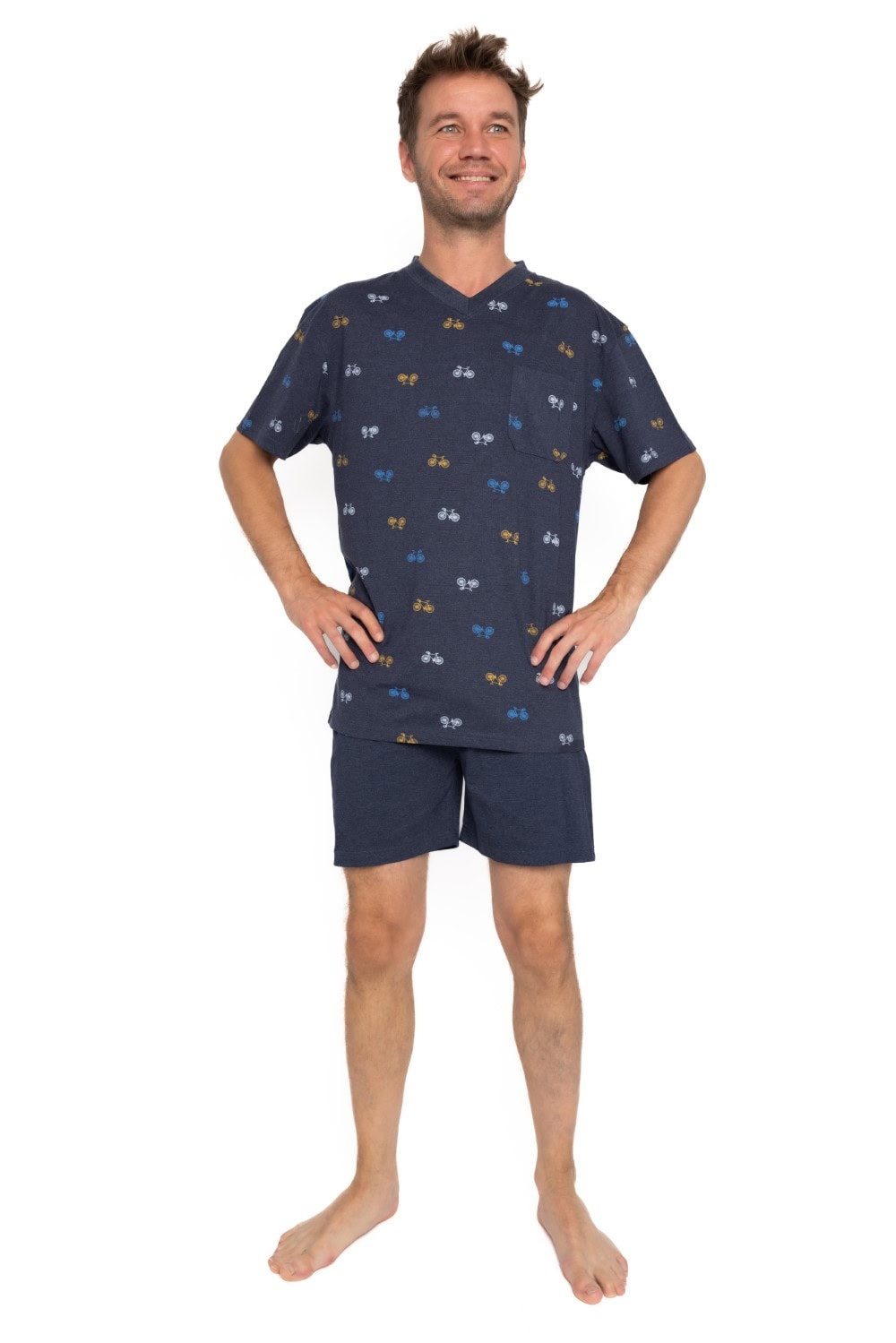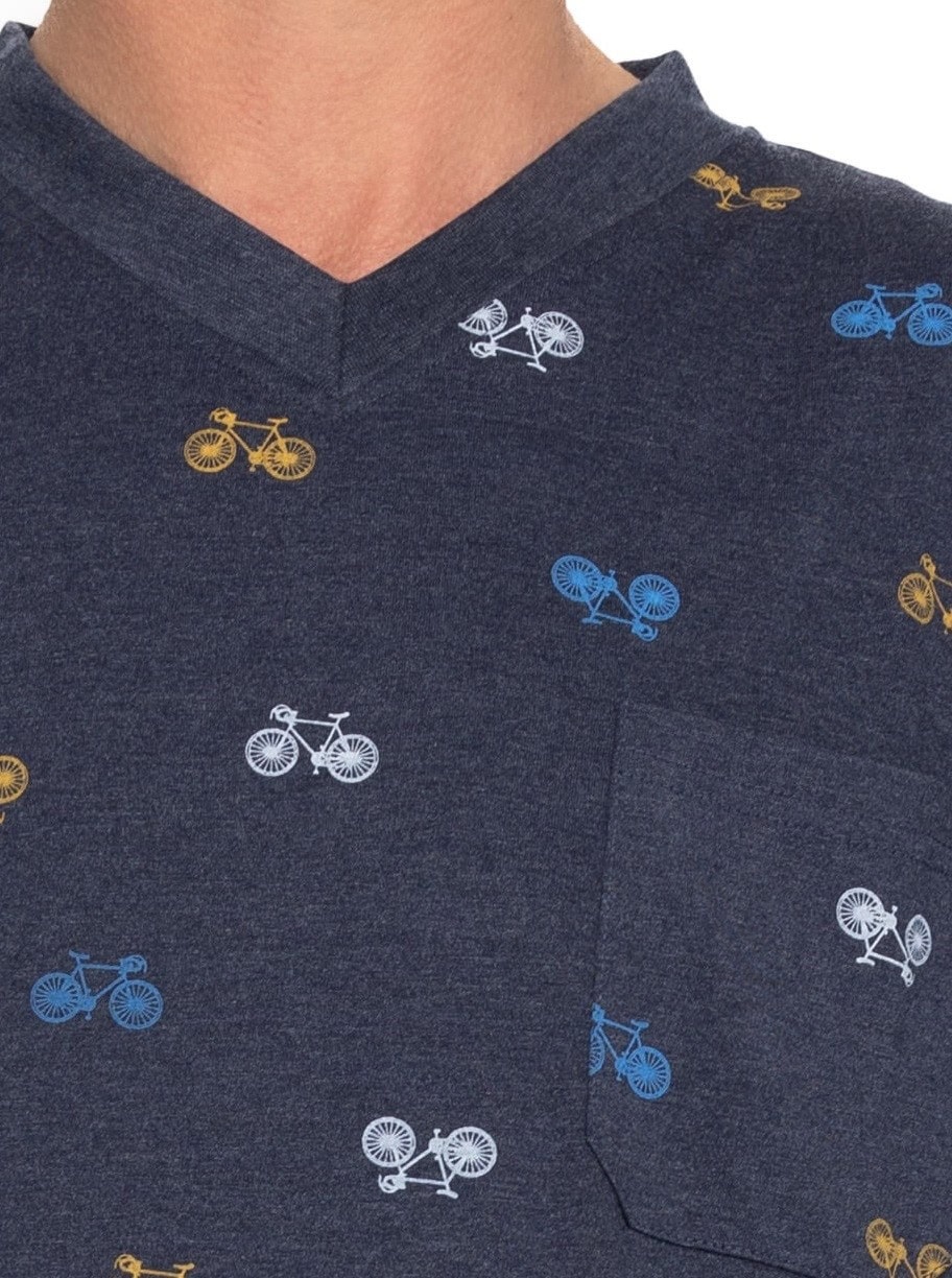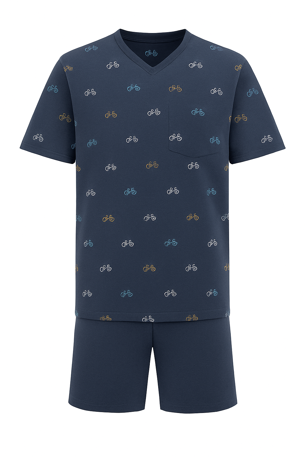 Heren shortama van het merk Outfitter in de kleur blauw met fietsjes op het shirt