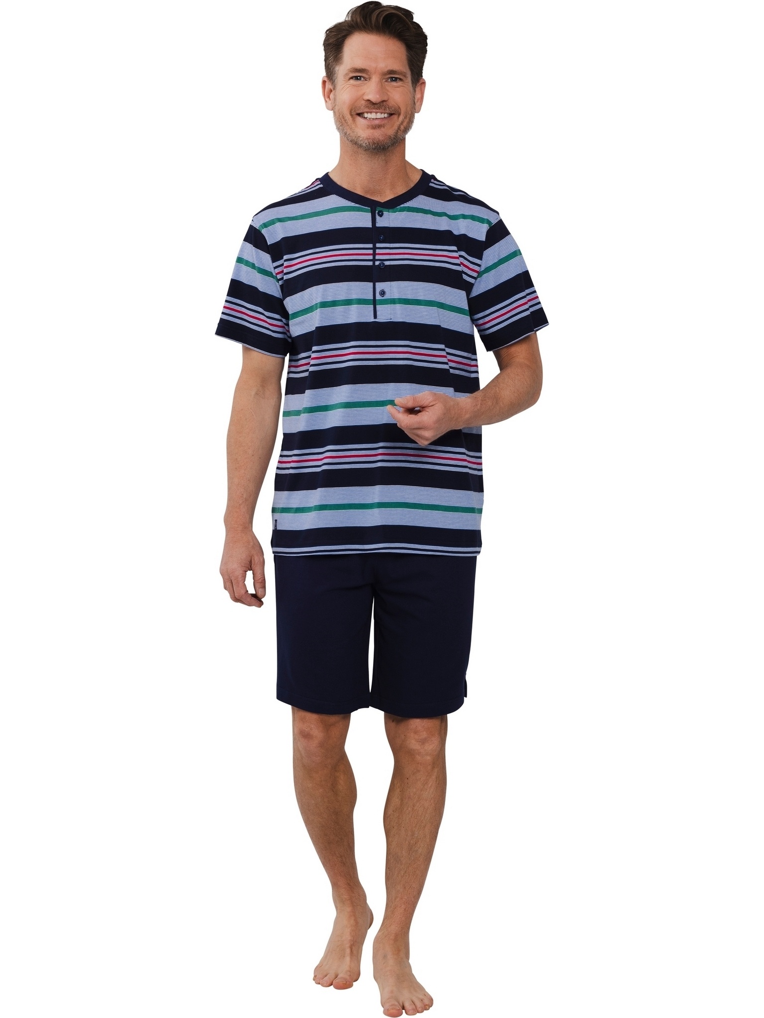 Heren shortama van het merk Pastunette. De korte heren pyjama heeft een frisse uitstraling. Gemaakt van 100% katoen. Lees meer