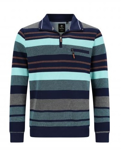 Sweatshirt van Hajo met borstzak in een mooi gestreept dessin. De sweater is gemaakt van 62% gekamd katoen 38% polyester. Lees meer