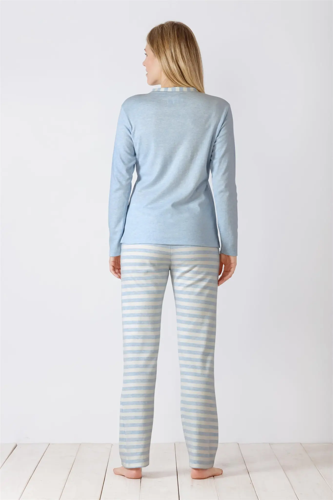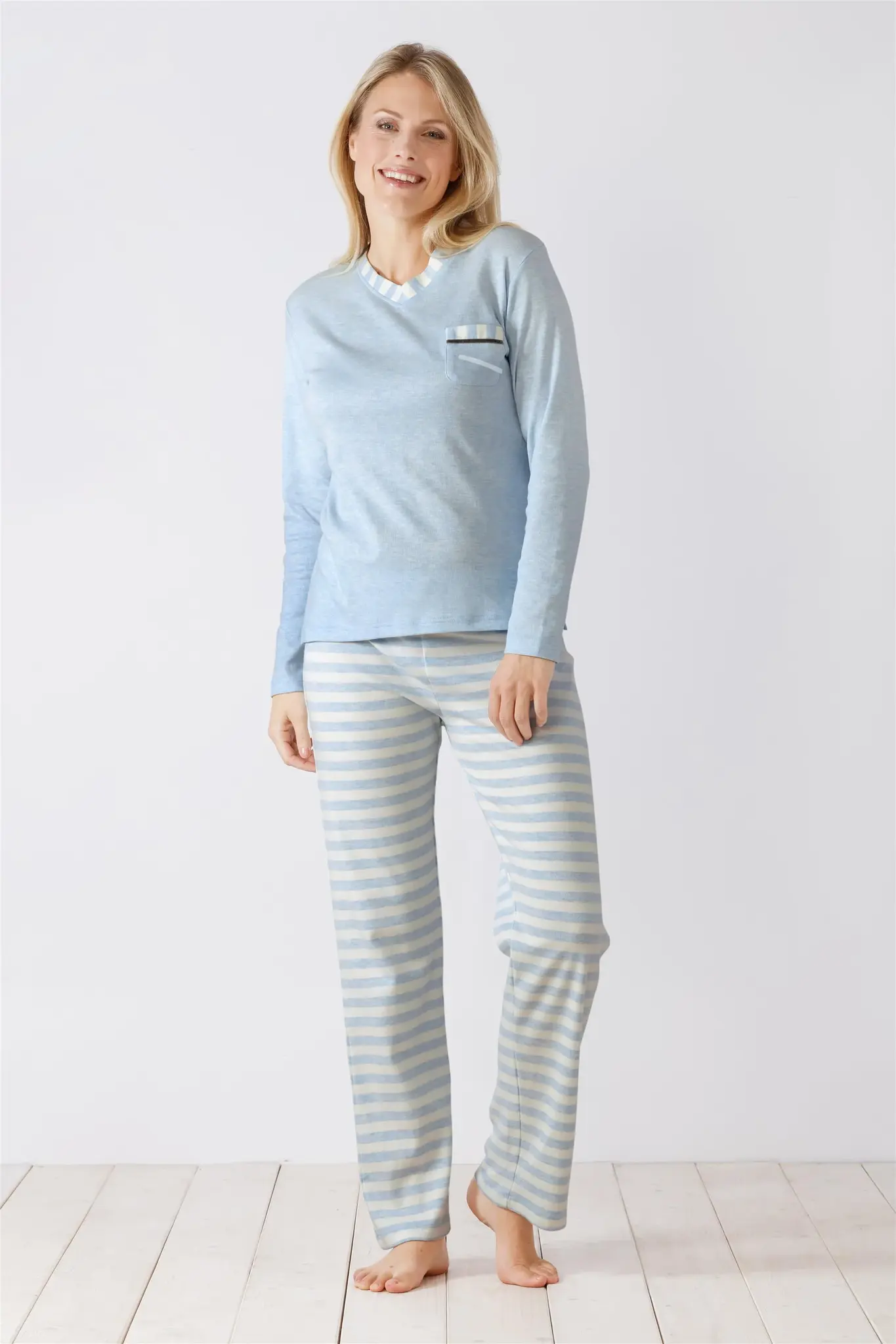 Comfortabele interlock winter pyjama van het kwaliteitsmerk Hajo. Uitgevoerd in een stijlvol blauw-wit gestreept design. Gemaakt van zachte, warme materialen voor optimaal draagcomfort in de koude maanden. Lees meer
