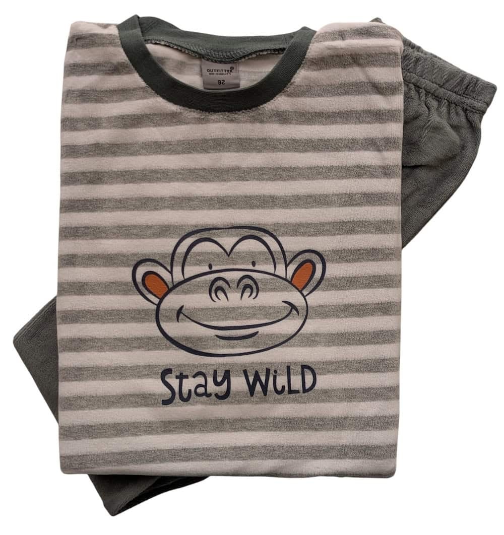 Outfitter jongens pyjama velours - grijs - monkey