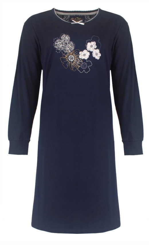 Medaillon dames nachthemd lange mouw - donkerblauw