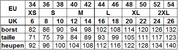 Maten: 40 - 42 - 44 - 46 - 48 - 50 - 52