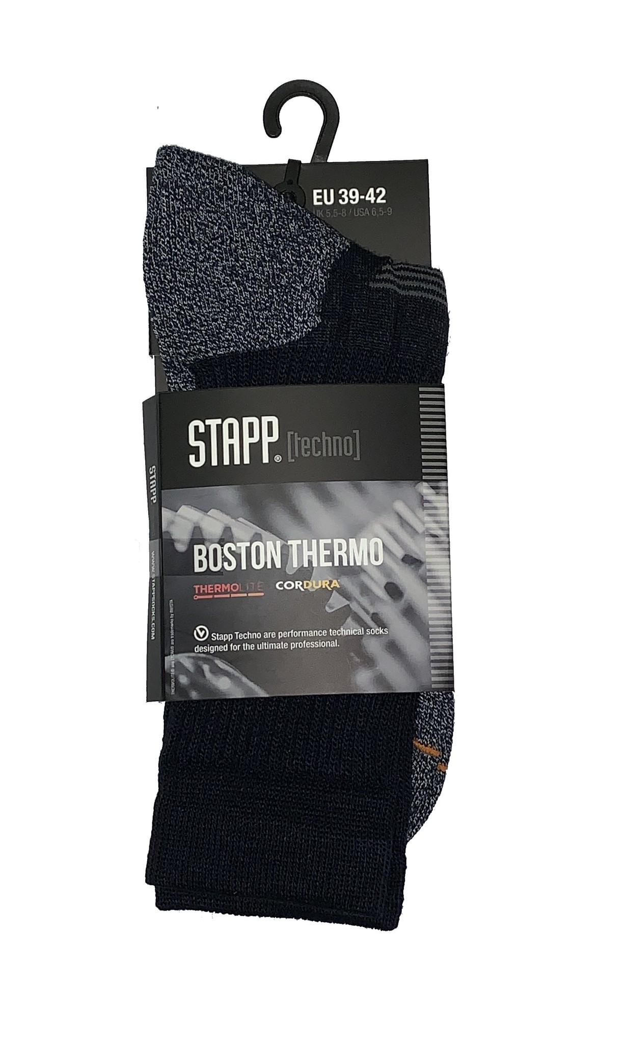 De Stapp techno thermo boston is een dunnere thermo sok die heerlijk warm is op de koude winterdagen. Door de mooie afwerking en de perfecte pasvorm is de sok ideaal als wandel- en werksok. De badstof zool met versterking op hak en teen voor maximaal comfort, schokdemping en extra lange levensduur van de thermo sok.